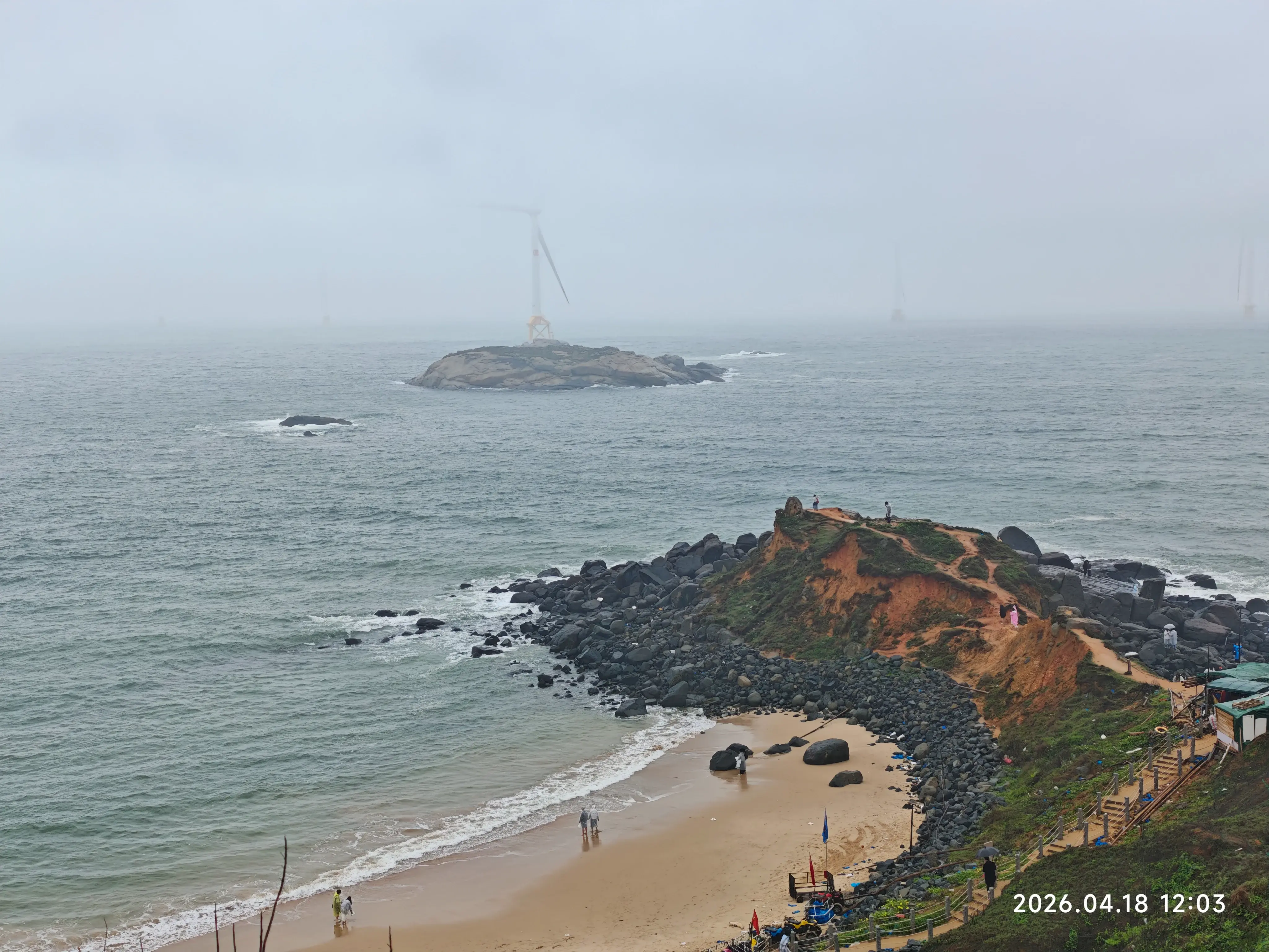 后面去找了个地方吃了个午饭,本来打算是要接下去走的,不过往后走发现山上雾很大,风很大。最终还是选择先回到民宿修整一下,不过还是去了民宿对面的沙滩(ps. 叫啥名我又忘了......)。